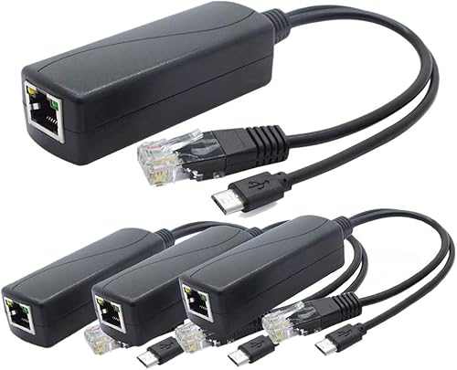 4-Pack 5V PoE Splitter, 48V to 5V 2.4A Adapter with -USB Plug, for IP Camera,Tablets,for and More