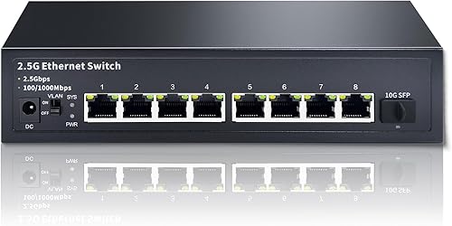 STEAMEMO 8-Port 2.5G Ethernet Switch with 10G SFP | Plug-and-Play Unmanaged Network Switch | 60Gbps Switching Capacity | Compatible with Gigabit/2.5Gb Multi-Gig for NAS, PC, Gaming & Home Office