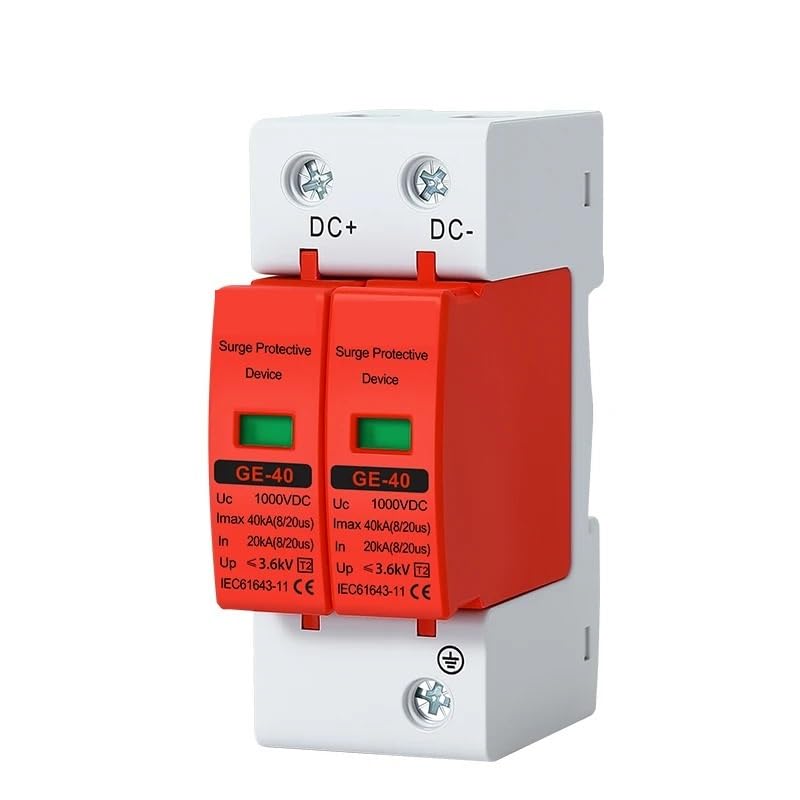 2P DC SPD 500V 600V 800V 1000V 20KA~40KA House Surge Protector Protective Low-Voltage Arrester Device 275VAC 385VAC(Gray Surge,1000VDC)