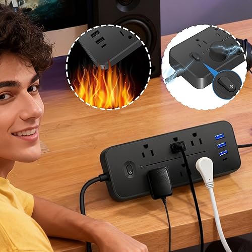 Socket Strips, Compact Design, Black, Surge Protector Outlet, MUL-ti Socket Plug, Easy Installation, for Home Bedroom Kitchen Living Room Dorm Refrigerator