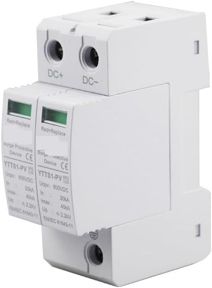DC SPD 500V 800V 1000V Surge Protective Device 20KA~40KA Low-Voltage Arrester PV Photovoltaic Lightning Arrester(White,500V)