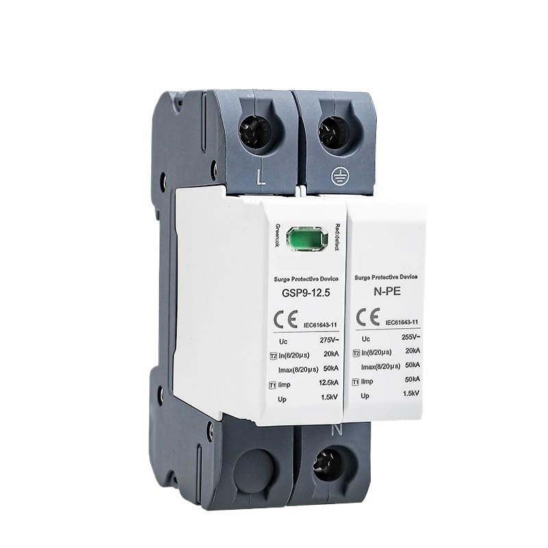 12.5KA T1+T2 50KA Type 1 SPD 2P 1P+NPE Surge Protector 275VAC Din Rail House Surge Lightning Protector(2P 12.5KA 275VAC)