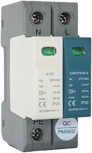 1+NPE Surge Protector 20KA-40KA, AC 220V 230V AC 275V House Surge Protector, Protector Arrester Din Rail Installation(2Pole with RC)