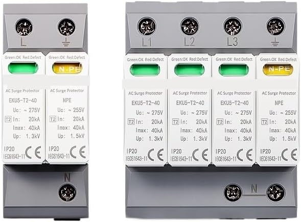 Surge Protective Device Protector Arrester Protection Type T2 SPD AC 2P 4P 20KA~40KA 1P+NPE 3P+NPE 275V EKU5(T2 3PN (3P NPE))