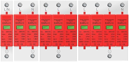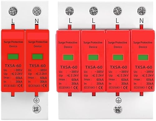 5pcs AC 385V SPD 1P 2P 3P 4P 20KA 30KA 40KA 60KA House Lightning Surge Protector Protective Solar PV Low-Voltage Arrester Device(1P,AC385V 30-60KA)