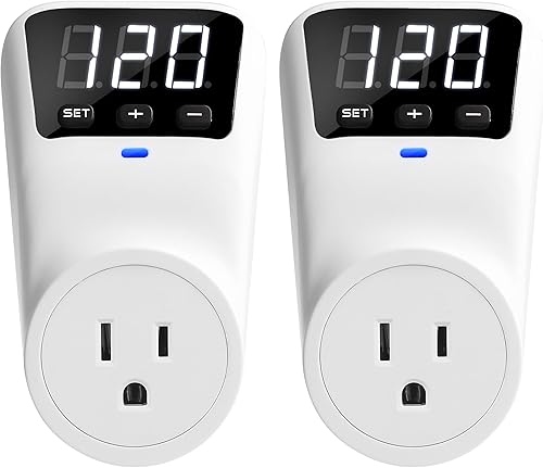 Surge Protector Voltage Stabilizers - Fireproof UL94V-1 Wall Mount Surge Protector Outlets for Refrigerator TV Appliances Real-Time Monitoring & Custom Voltage 80V-140V, 15A, 120V, 1800J,2 Pack