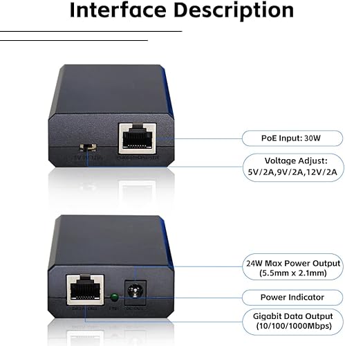 2-Pack, 24W 802.3at Gigabit PoE+ Splitter to 5V/9V//12V, (5.5mm x 2.1mm) or Micro USB Power Adapter for Raspberry Pi 2/3B+, Tablets, Security Cameras (with 6pcs Cables)