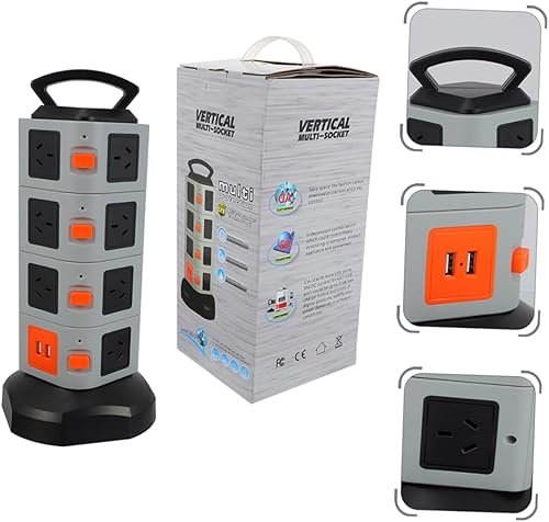 Multi Plug Charging Strip USB Charging Station with Vertical Design and Portable Handle Extension Cord for Home Office Dorm Use Compatible with US Plug Voltage