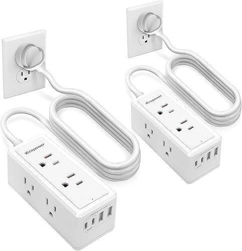2 Pack Power Strip Surge Protector-6 Widely Spaced Outlets 4 USB Ports(2 USB C Port,PD 20W),1250W/10A with 5Ft Extension Cord, Power Strips with Surge Protection, Wall Mount for Home Office,White.