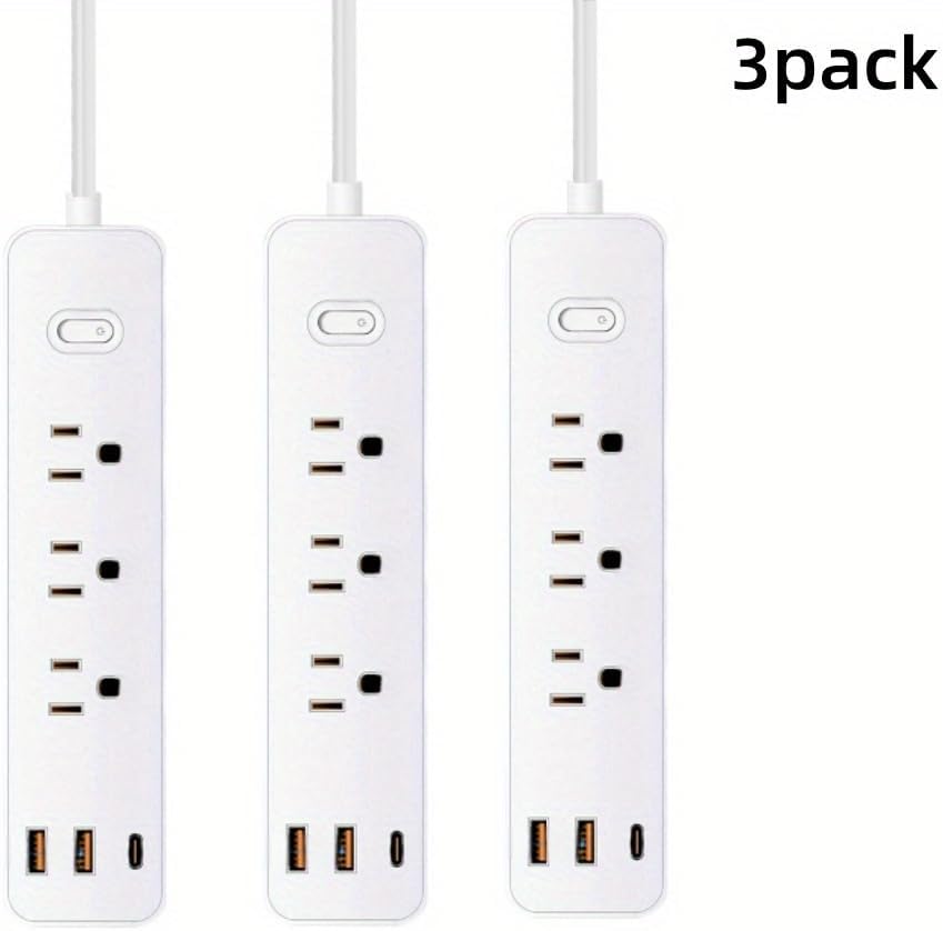 Power Strip Surge Protector with Ac Sockets USB Ports Fireproof Material for Use USB Type C Fast Charging US Plug