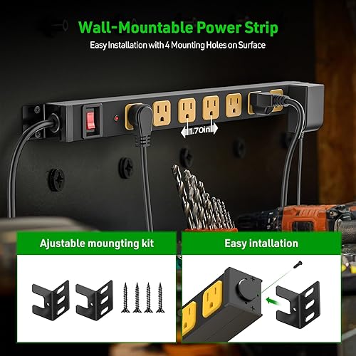 CRST 8 Outlet Metal Heavy Duty Power Strip, 2100 Joules Surge Protector Power Strip, 15Amp/1875W Wall Mount Garage Shop Home Power Bar with 6FT 14AWG Extension Cord