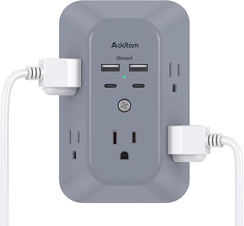 Addtam Surge Protector Outlet Extender, Multi Plug Wall Outlet with 4 USB Ports(2 USB-C), 3-Sided 1800J Power Strip Plug Extension Outlet Splitter, Gray