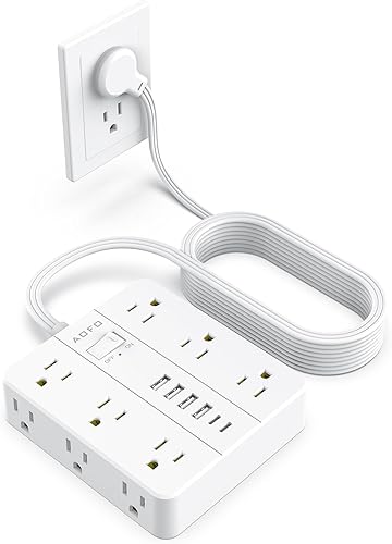 25FT Surge Protector Power Strip,12 AC Outlets with 6 USB Ports (2 USB-C), Flat Plug Extension Cord with Multiple Outlets, Wall Mount for Home Office,Dorm, Black