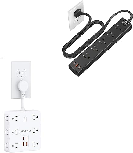 Flat Plug Small Power Strip with 12 AC & 4 USB(2 USB-C), 6 Ft Ultra Thin Extension Cord, Surge Protector with 5 Outlets & 3 USB Ports (2 USB C) for Home Office Travel