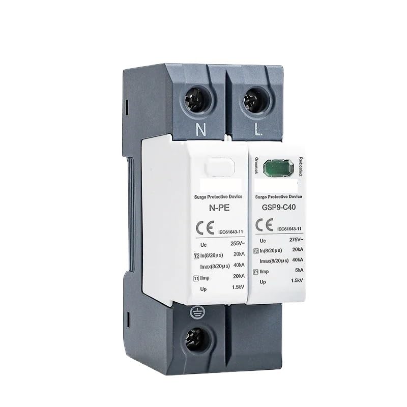 GSP9 2P AC SPD 20KA-40KA AC275V AC385V 400V 440V House Surge Protector Protection Protective Low-Voltage Arrester Device(1P NPE AC275V 40KA)