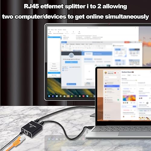 Ethernet Splitter 1 to 2 Gigabit RJ45 Ethernet Splitter 1000Mbps RJ45 Network Switch 8P8C LAN Internet Extender 1 in 2 Out Adapeter with USB Cable for Computer Hub Router