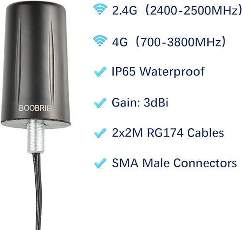 BOOBRIE 2x2 MIMO Omnidirectional Antenna for 5G/4G LTE (700-3800MHz)+ WiFi (2.4-2.5GHz) High Gain Waterproof Outdoor/Indoor Antenna with 2x6.56ft SMA Cables for IoT/Router/Networking