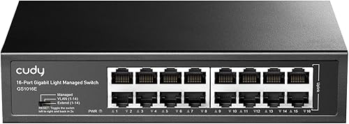 Cudy GS1016E 16 Port Light Smart Managed Gigabit Switch Plug & Play, Sturdy Metal w/Shielded Ports QoS, VLAN, IGMP LAG, Rack-Mountable Steel Case
