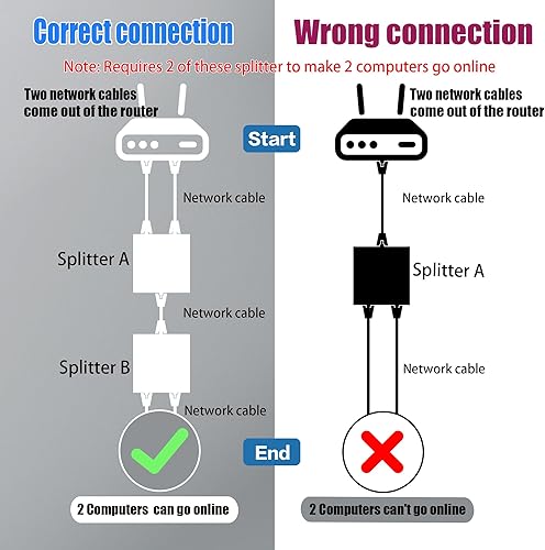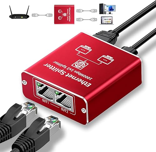Ethernet Splitter 1 to 2 High Speed 1000Mbps, Gigabit Ethernet Splitter, LAN Splitter Dual LAN RJ45 Port Router Switch for Cat5/5e/6/7/8 Cable, IEEE 802.3 Compliant Plug and Play