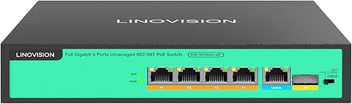 LINOVISION 4 Ports Full Gigabit PoE++ Switch, Built-in 96W Power, All 4 Ports Support BT 90W, Sufficient Power for All IEEE 802.3 af/at/bt PoE Devices, Including PTZ Cameras, AP and PoE Light