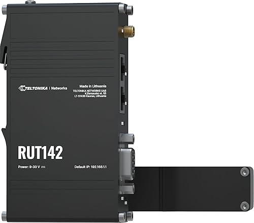 Teltonika RUT142000000 Model RUT142 Industrial Router; RS232 for Serial Communication; Integrated DIN Rail Bracket; 3-pin Power Connector; 2X 10/100 Mbps Ethernet Ports; Wi-Fi 4; Aluminum Housing