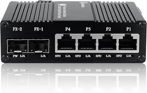 Industrial 6 Port Umanaged Ethernet Switch, Network Switch, 4 Port RJ45 10/100/1000BASE-T+2 Gigabit SFP Slot 1000Base-X, Plug & Play, Din Rail or Wall Mount, AC 110V~220V Wide Voltage Input