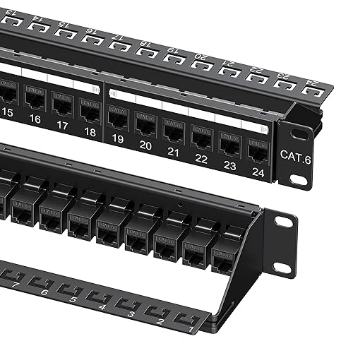 Cable Matters 1U 19-Inch 24-Port 10Gbps Cat6 Ethernet Patch Panel with Inline Keystone and Cable Management Bar, Rackmount or Wall Mount Network Patch Panel