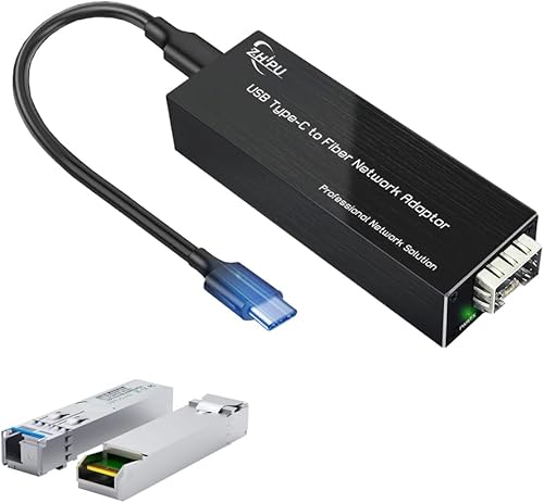 USB C to Fiber Network Adaptor,USB3.0 Type C to 100/1000base-X SFP Gigabit Network Card,Equipped with 2Pack 1.25G Single-Mode Dual-Fiber Module,20km Transmission