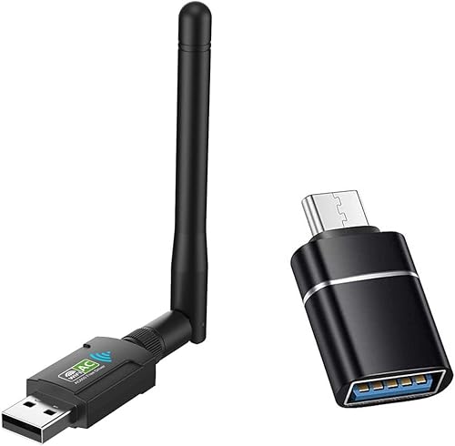AC600 USB WiFi Adapter for PC Wireless USB Network Adapters Dual Band 2.4GHz, 5GHz,Supports Win11/10/8/7/XP, Bring USB C Adapter. Black