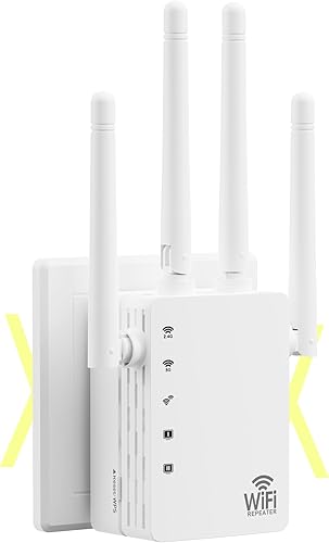 WiFi Extender Signal Booster for Home - 1200Mbps Dual Band, Covers 12850 Sq Ft & 108 Devices, Long Range Internet Booster with Ethernet Port, White