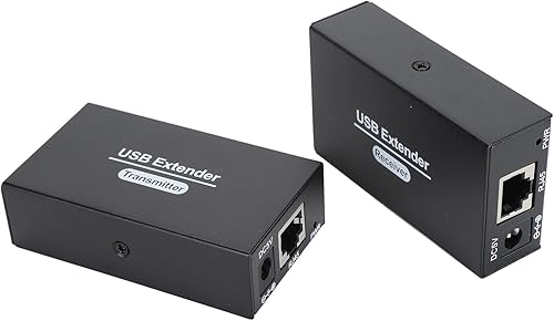 USB Extender Ethernet RJ45 LAN Extension, Transmit 120m/394ft Over Single Ethernet Cat5e 6 7 Up to 480Mbps with 4 USB 2.0 Hub, for for OS X for Android for Linux (US Plug)