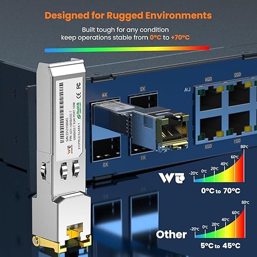 【Low Power Consumption (<2.5W)】: Designed with a thermally conductive gasket for efficient heat dissipation, extending the lifespan of the module. Ideal for business, office, home, and data center networking for LAN applications and various other networking environments. Operating temperature range: 0 to 70°C (32 to 158°F).