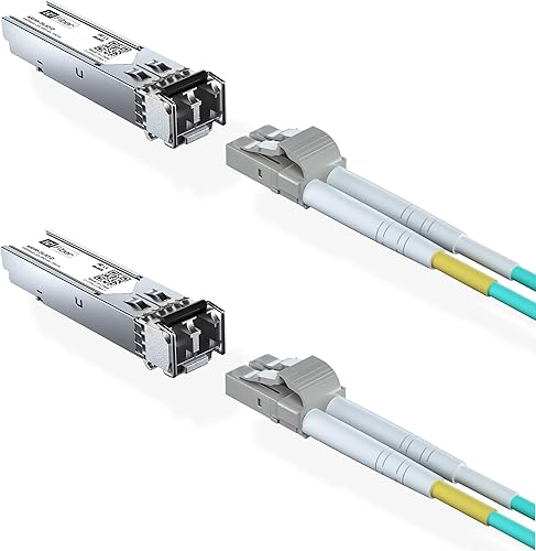 1000Base-SX SFP: Gigabit Ethernet Multimode SFP Module, 1.25 Gb/s, 850nm wavelength, Dual LC, MMF, operates on multi-mode fiber cable (OM1/OM3) spans of up to 550 m (1800 Ft) in length. 2 Pack.
