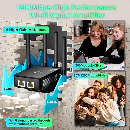 4X Faster Than Ever - Powered by an Advanced 2-Core Central Processor and supporting Dual-Band (2.4GHz & 5GHz), our wireless WiFi booster extender with 2 Ethernet Ports ensures consistent, strong signals and blazing-fast speeds, delivering internet speeds up to 1200M