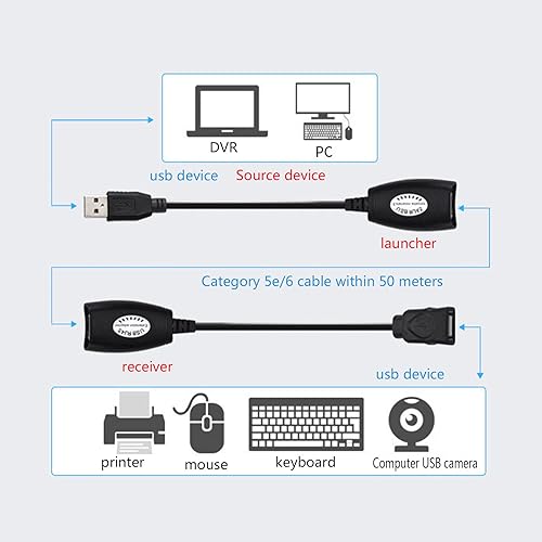 Suitable for use with USB cameras, printers, webcams, keyboard/mouse extensions, and any other USB device.