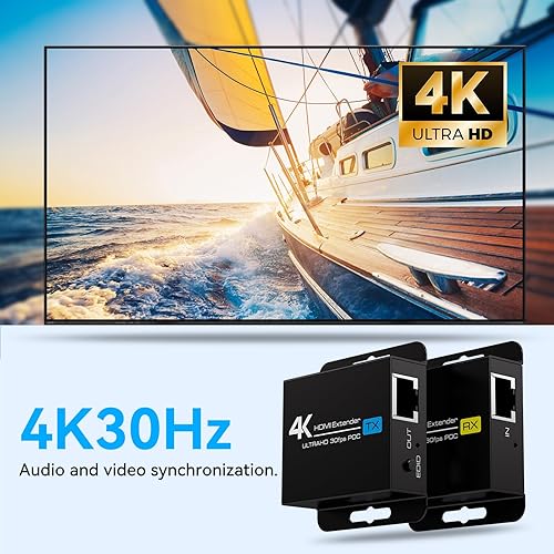 【HDMI Extender over Cat5e/6】HDMI extender use a single-strand oxygen-free copper cable, 5E/6/7 LAN cables can transmit HDMI signals over long distances. At 4K 30Hz, the maximum transmission distance reaches 131 feet (40 meters), while at 1080P, it can extend up to 196 feet (60 meters). CAT5e/6 cables enable lossless audio and video signal transmission. They are suitable for computers, gaming consoles, Blu-ray players, and other media devices