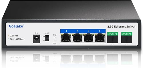 【6-Port 2.5G Ethernet Switch】Upgrade your network with Goalake 2.5 gigabit switch, featuring 6x 2.5G RJ45 ports and 2x 10G SFP port for faster connectivity, 60Gbps ethernet switching capacity. Ideal for supporting the latest 2.5G ethernet standard.