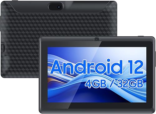 7 inch Android Tablet, 7 inch HD IPS Touchscreent, Quad-Core, 4GB RAM 32GB ROM 1TB Expand, 2MP + 5MP Dual Camera, WiFi 6 Bluetooth 3000 mAh Battery Tab Tablet with Case.(Black with Case)