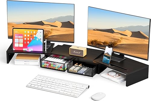 [Maximize Space with Monitor Stand Riser]: Lift your screen and free up space underneath for a keyboard, notebook, or stationery. Perfect as a monitor stand, dual monitor stand, or workspace organizer for any home office or studio setup.
