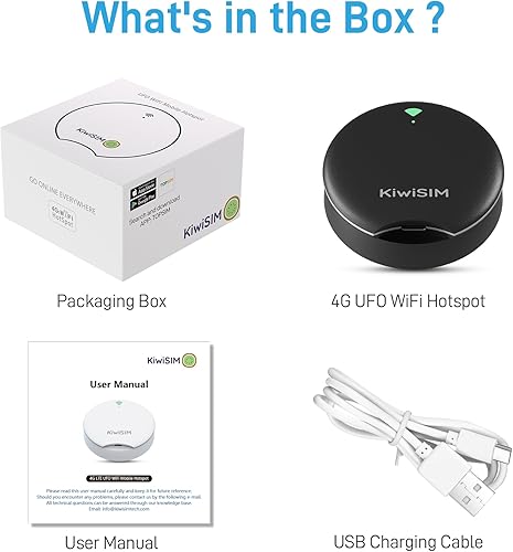 KiwiSIM UFO Mobile Hotspot: KiwiSIM portable WiFi hotspot device can be used anywhere in the United States, with full 4G LTE network coverage. Whether you are embarking on an RV trip, working remotely, or having a dinner in the great outdoors, it provides stable network support. This portable WiFi offers you a one-stop solution, so you don’t have to worry about network issues.