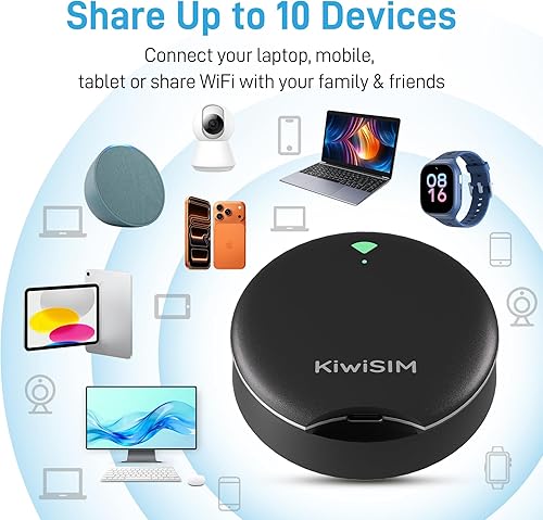 Stylish Design: The portable WiFi is compact and lightweight, measuring approximately 3.5 inches and weighing just 0.28 ounces—around 1/6 the weight of an iPhone. Featuring an ultra-portable design and supporting on-the-go charging, it can keep you connected anytime simply by plugging it into a power base, power bank, wall charger, or car charger. The KiwiSIM Hotspot WiFi is ideal for long-distance trips, RV travels, remote work, and leisure activities.
