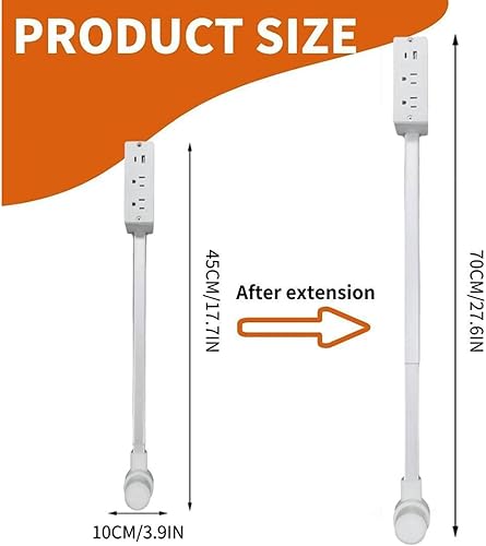 【Adjustable Rotatable Design】Extended Rotating Outlet 22-34 Adjustable Arm, Flexible 180° Rotating Base Positions Power Outlet Extender Vertically Horizontally. Ideal For Tight Spaces Behind Furniture With Angled Placement Capabilities.