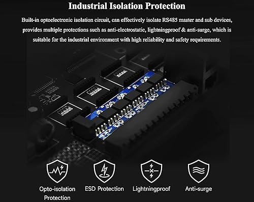 Industrial Isolation Protection--Built-in optoelectronic isolation circuit, can effectively isolate RS485 master and sub devices, provides multiple protections such as anti-electrostatic, light-ningproof & anti-surge, which is suitable for the industrial environment with high reliability and safety requirements. Supports 35mm standard guide rail, with rail-mount buckle, easy to install.