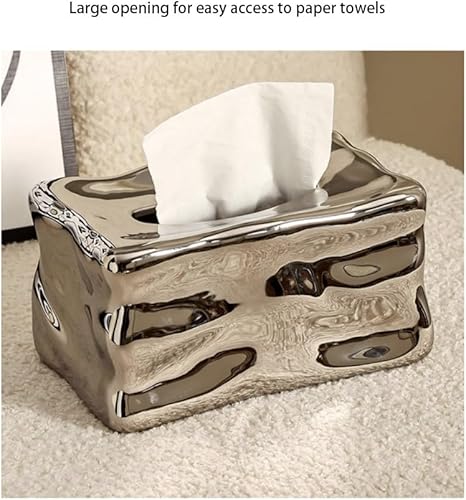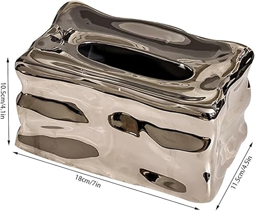 Stylish Tissue Box Ceramics Square Tissue Box Reusable Tissue Box and Tissue Holder Napkin Dispenser for Home Office Restaurant Desks Gifts Modern Tissue Box (Color : Silver) (White)