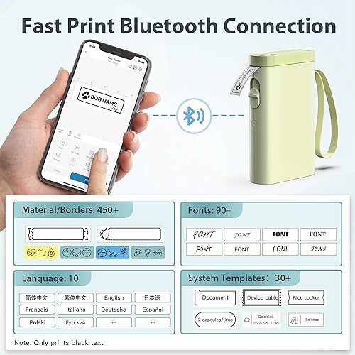 【Multiple Creative Templates】Unleash your creativity with the bluetooth label maker APP, offering a wide range of free functions and templates, including 90+ fonts, 10+ languages, 450+ materials, which allow you to DIY personalized text, QR code, barcode, text box, and other patterns of label stickers. The fixed label lengths, including 12X40mm, 15X30mm, and 15X40mm, cater to various labeling needs