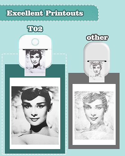 Mini Printer Sticker Maker: T02 mini printer is portable with 3.39 x 3.39 x 1.42 inch, mini palm size makes T02 pocket printer easy to carry and store. This mini sticker printer is for Halloween, Thanksgiving Day, Christmas, Birthday and holiday present to families and friends