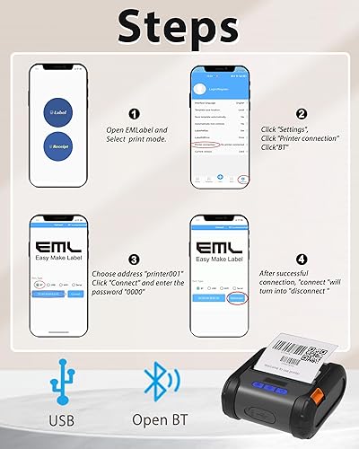 Important for iOS:ZM04 printer does not work with other iOS applications, it is fully compatible with our dedicated "EMLabel" app. Simply download "EMLabel" from the Apple Store to connect via Bluetooth(NO USB) and print your labels or receipts.