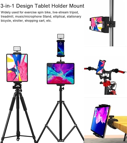 【3-in-1 Design】Come with a universal Tablet Holder, a Pole Clamp Mount and a Tripod Connecting Mount, widely used for exercise spin bike, live-stream tripod, treadmill, music/microphone Stand, elliptical, stationary bicycle, stroller, shopping cart, etc.