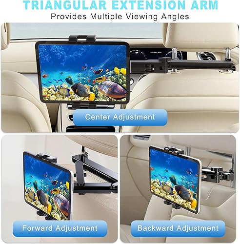 Tablet Holder for Car Headrest, [Upgrade Triangle Extension Arm] iPad Car Holder Back Seat, Road Trip Essentials, iPad Car Mount Backseat for iPad Pro, Air, Mini, Galaxy, Fire HD, 4.7-12.9" Device