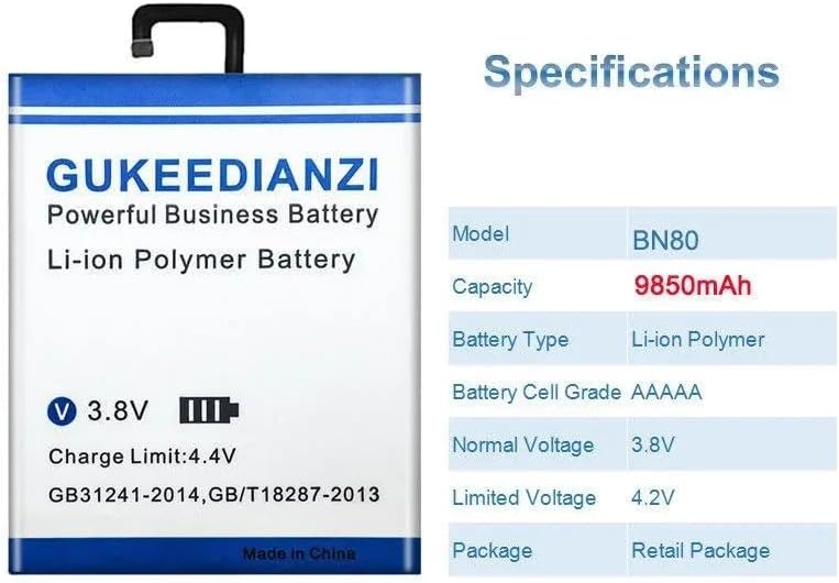 • 【Compatible Models】 This is an independent lithium polymer battery that is not sold with the product. Battery Model: BN80. This Replacement battery Compatible for Xiaomi Pad 4 Plus Tablet 4 Plus. Before purchasing, please ensure that it matches your device model.